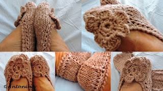 jeszcze letnie, zrobione z nitek bawełniano-akrylowych, przepadły gdzieś w zbiorach zdjęć. Zrobione oczywiście według tego opisu, tyle że pozbawione poprzecznego paska na wierzchu stopy.